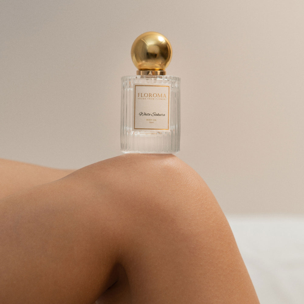 Step 3: Follow up with FLOROMA Body Care Oil to lock in moisture, creating a double-layer barrier for enhanced skin texture. Gently massage in circular motions to improve absorption, focusing on drier areas like elbows and knees.
